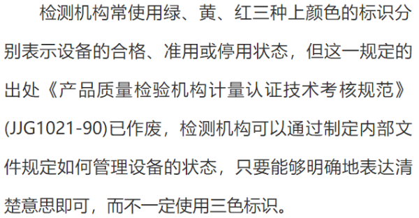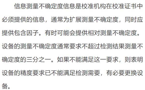 有时还可以从产品标准中规定的极限值等要求中获取。这是开展校准结果确认的关键环节。许多检测人员往往是不会识别或难于识别设备的预期使用要求而使这一工作没能做到位。